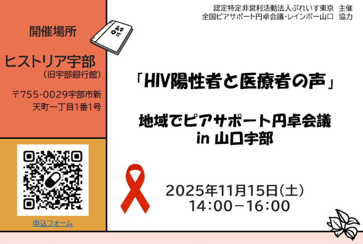 「HIV陽性者と医療者の声」地域でピアサポート円卓会議 in 山口宇部 開催のお知らせ