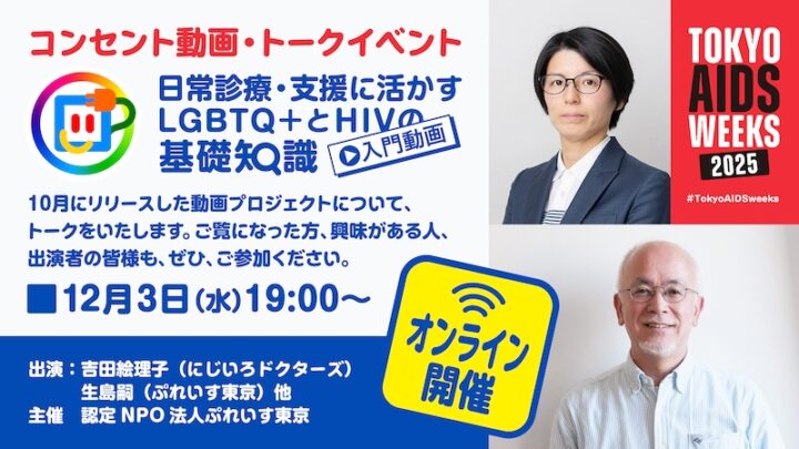 TOKYO AIDS WEEKS 2025の一環として、日常診療、支援に活かす「LGBTQ+とHIVの基礎知識」入門動画オンライントークを行います。