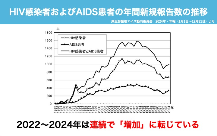 ぷれいす東京には、2025年現在でも、感染を不安に思う人たちから毎日多くの相談が寄せられます。中には、HIV陽性を告知された直後の20代の若者や、家族からの相談も寄せられます。治療は大きく進歩し、1日1回の服薬、あるいは2ヶ月に1回の注射薬などで、ウイルスを抑えることができ、健康を維持できるようになりました。きちんと服薬をしていれば、性的なパートナーにも感染しません。子づくりも、今まで通りに可能です。